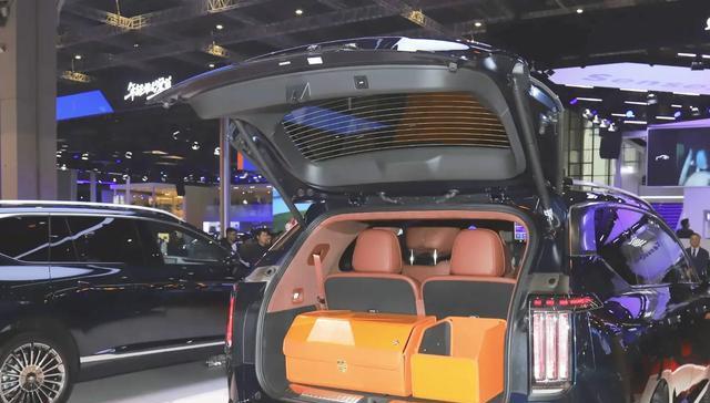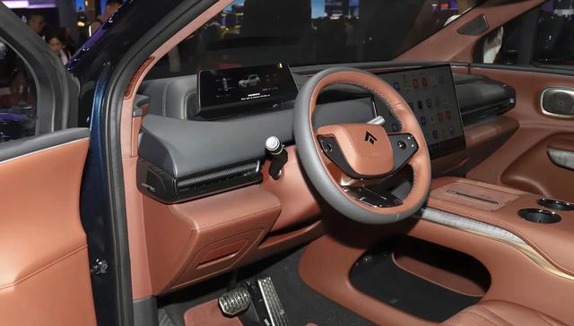 车内依旧是我们熟悉的风格,包括8.8英寸仪表、17.3英寸中控屏、怀挡机构和三辐式方向盘,搭载高通骁龙8295P芯片和ADiGO 6.0智能座舱,语音控制系统接入AI大模型,科技感依旧很强。配置方面包括L2级辅助驾驶、空气悬架、前排和二排座椅通风/加热/按摩、HUD抬头显示、电吸门、50瓦无线充电等,高配车型还提供后排17.3英寸吸顶屏和冷暖冰箱。